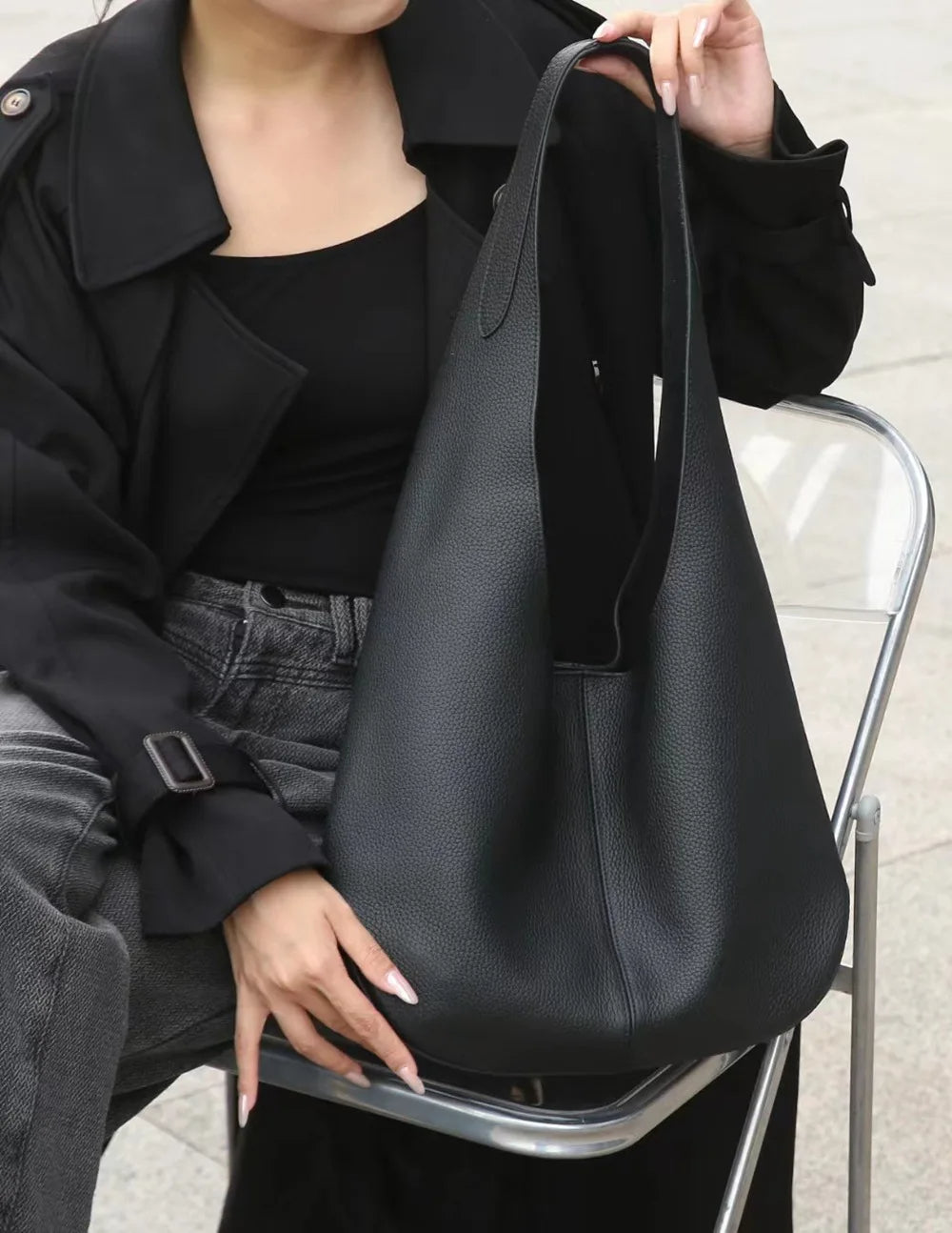 Hanna är en stilren axelremsväska i matt svart läder som kombinerar elegans och funktion. Den har en mjuk, följsam design och är precis lagom rymlig för dina dagliga nödvändigheter. Med sin minimalistiska look passar den både till vardags och fest.
