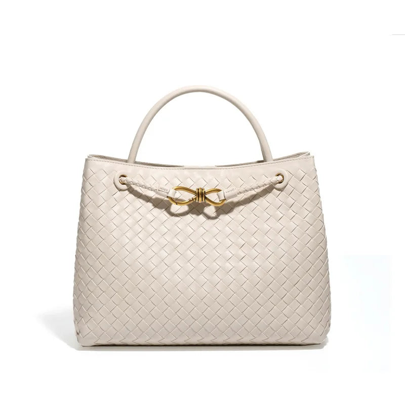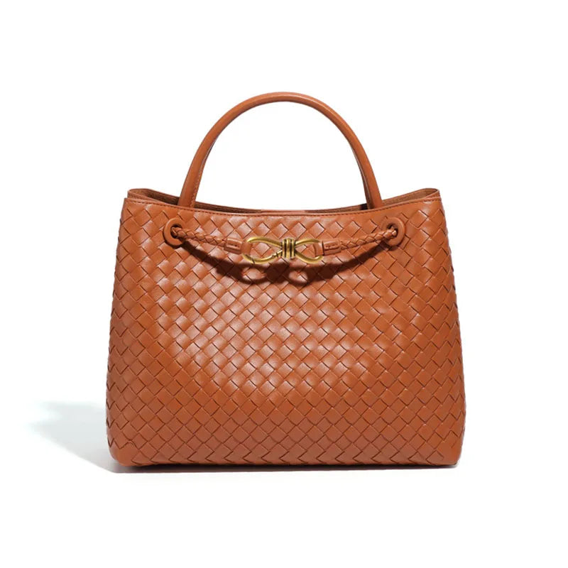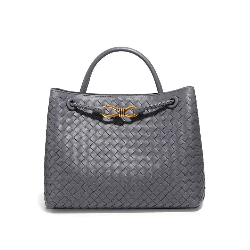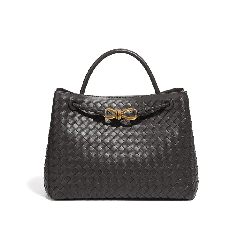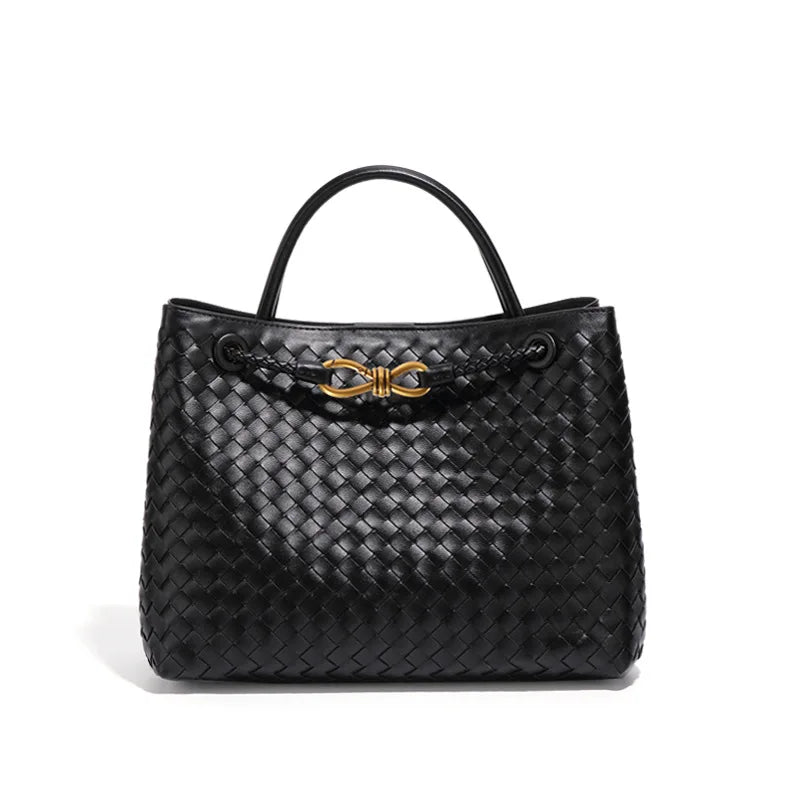 Vera är en elegant och stilren handväska i bland annat svart flätad design, tillverkad av PU-läder med en dekorativ gulddetalj framtill. Väskan mäter 25 cm i längd, 9 cm i bredd och 19 cm i höjd, med ett handtag som ger ytterligare 8 cm. Den stängs med en praktisk magnetknapp och passar perfekt för både vardag och fest. En tidlös väska som kombinerar stil och funktion.
