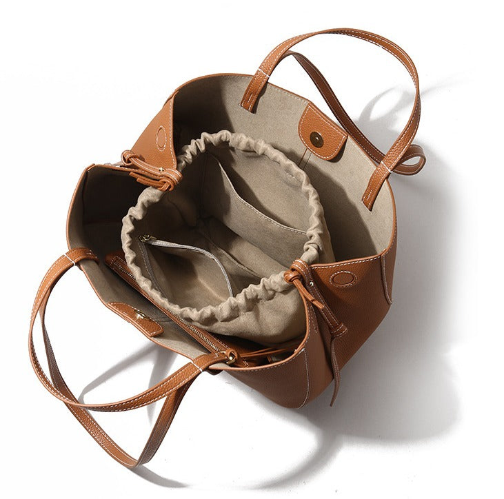 Alice is a stylish tote bag made of genuine cowhide leather in a deep dark chocolate brown shade. Measuring 33 x 13 x 27 cm, it holds everything you need for everyday life. Carry it in your hand or over your shoulder – as practical as it is elegant.