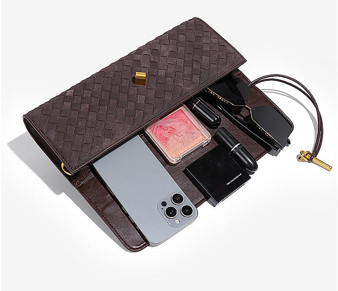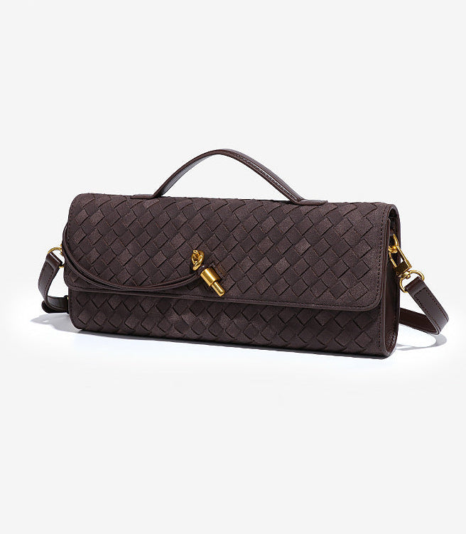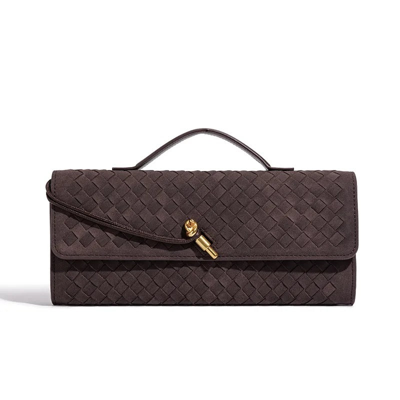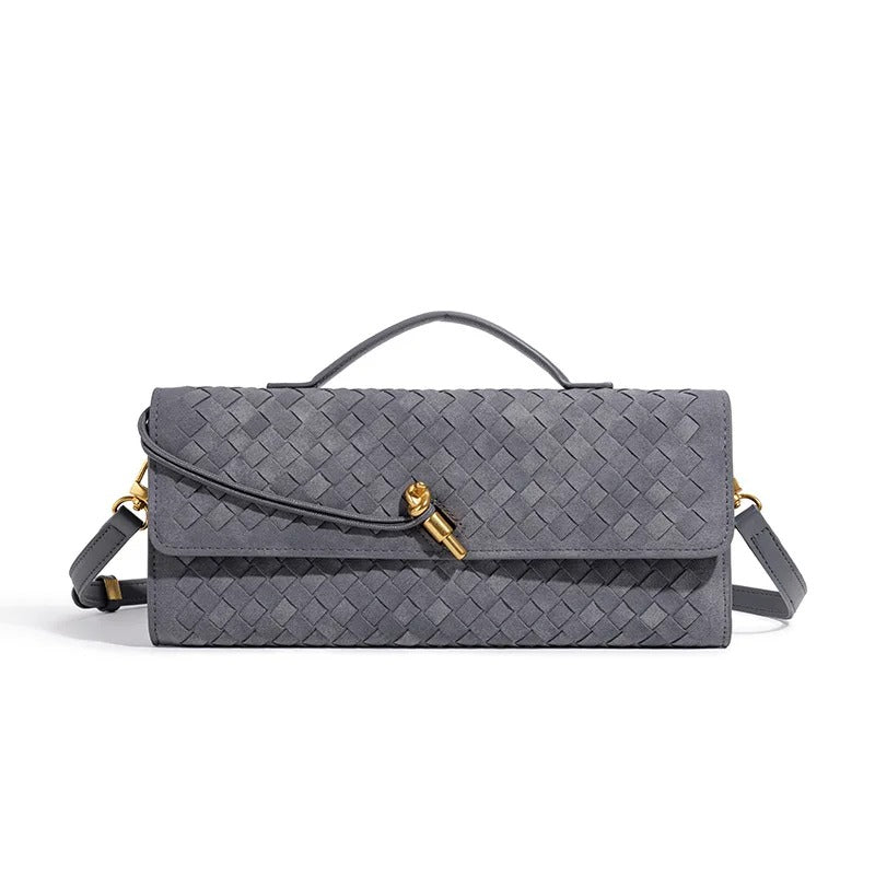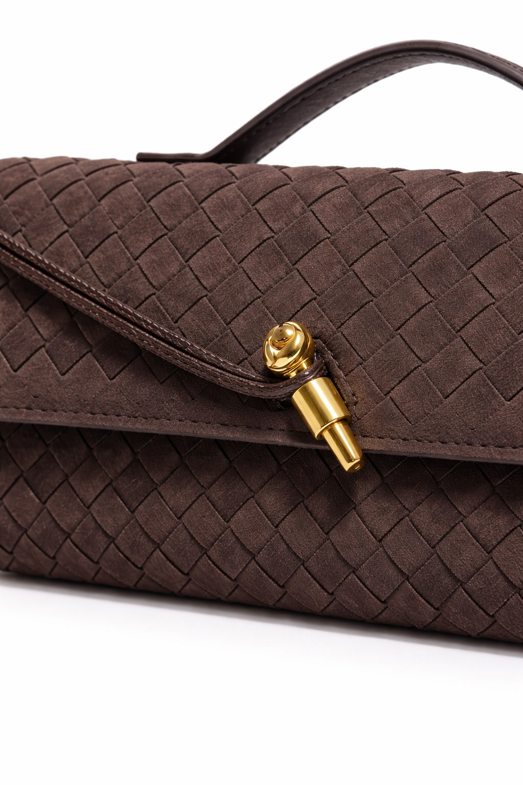 Uppgradera din stil med Cecilia, en elegant väska inspirerad av vår väska Patricia – nu i en mjuk mockaliknande textur som ger ett mer exklusivt och sofistikerat uttryck. Den flätade designen tillsammans med den stilrena gulddetaljen gör den till ett tidlöst val för både vardag och fest.